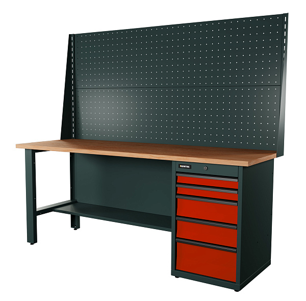 Верстак серии Industrial, 2000 мм, фанера, тумба с 5-ю ящиками, экран 1000, красный RAL 3020, RUNTEC, RTI20F-TI5-NI-P20-P20-3020