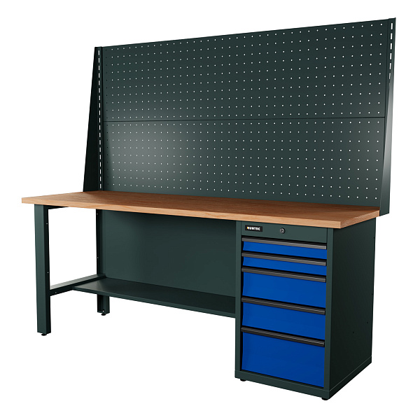 Верстак серии Industrial, 2000 мм, фанера, тумба с 5-ю ящиками, экран 1000, синий RAL 5005, RUNTEC, RTI20F-TI5-NI-P20-P20-5005