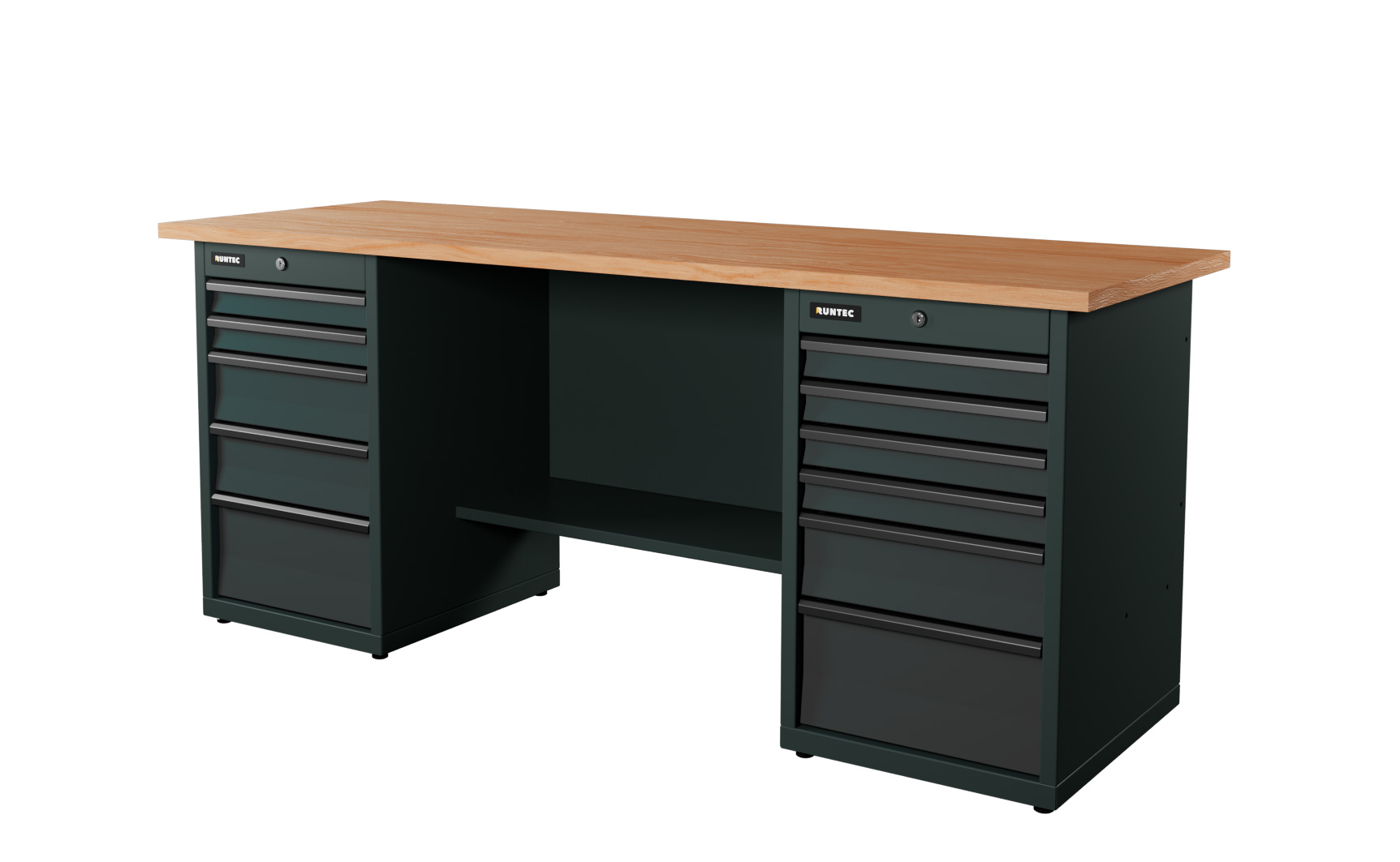Верстак серии Industrial из конструкционной стали. Встроенные замки с системой Easy Lock позволяют закрыть все ящики одним поворотом ключа. Верстак рассчитан на распределенную нагрузку до 1500 кг.
