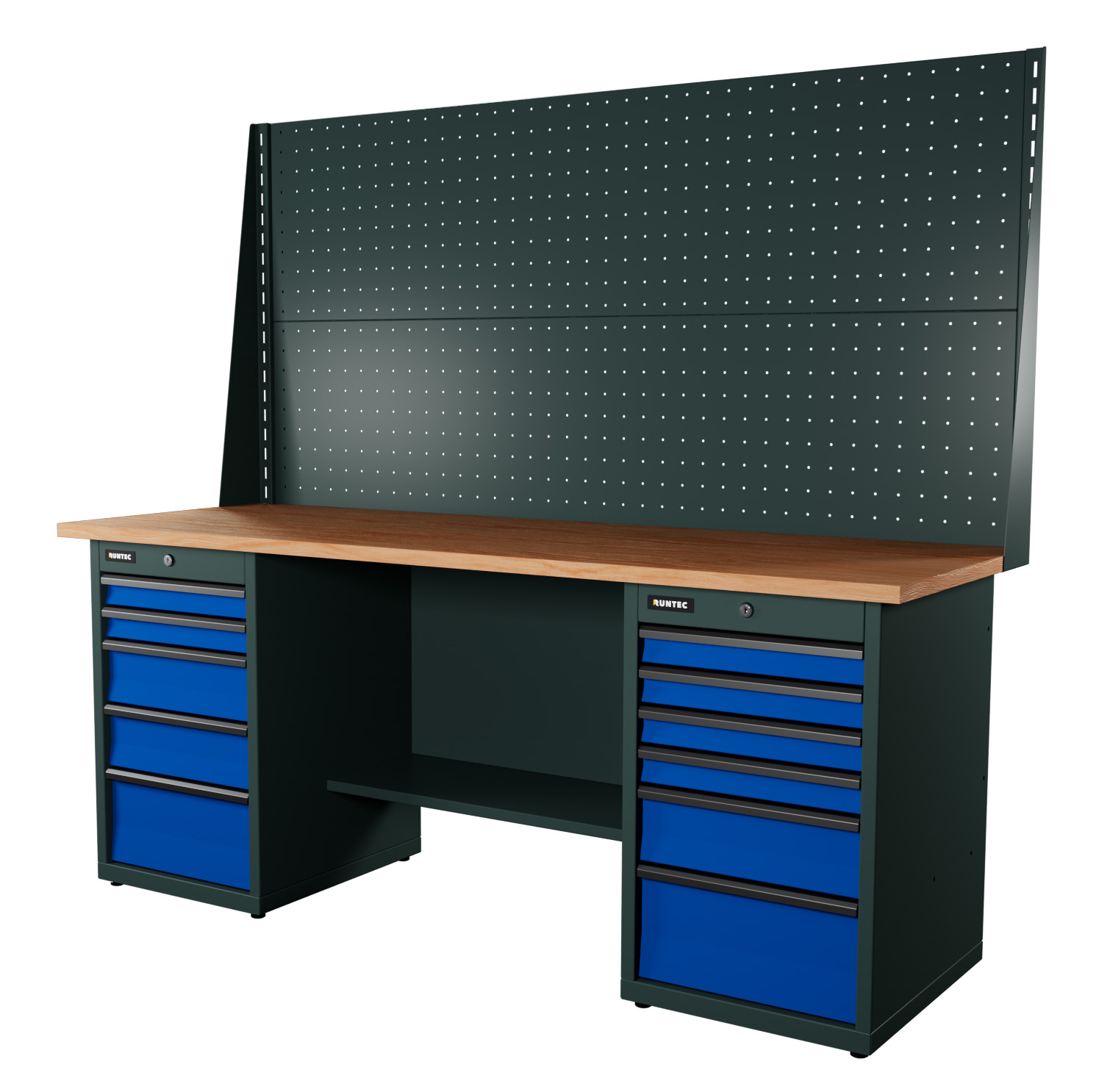 Верстак серии Industrial, 2000 мм, фанера, тумба с 5-ю ящиками + тумба с 6-ю ящиками, экран 1000, синий RAL 5005