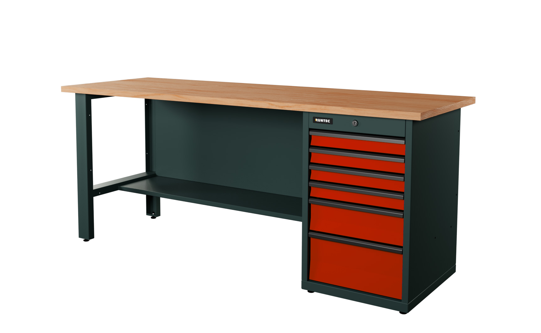 Верстак серии Industrial, 2000 мм, фанера, тумба с 6-ю ящиками, красный RAL 3020
