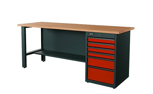 Верстак серии Industrial из конструкционной стали. Встроенные замки с системой Easy Lock позволяют закрыть все ящики одним поворотом ключа. Верстак рассчитан на распределенную нагрузку до 1500 кг.