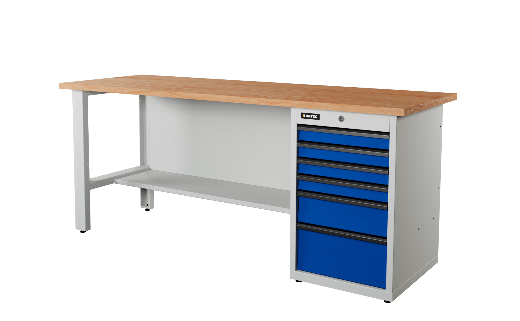 Верстак серии Industrial, 2000 мм, фанера, тумба с 6-ю ящиками, синий (светло-серый) RAL 5005 (7035)