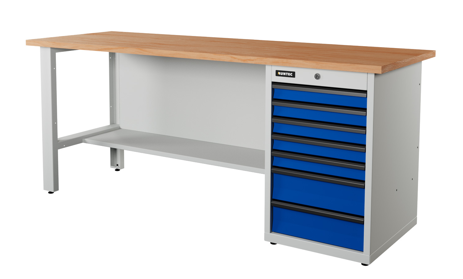 Верстак серии Industrial, 2000 мм, фанера, тумба с 7-ю ящиками, синий (светло-серый) RAL 5005 (7035)