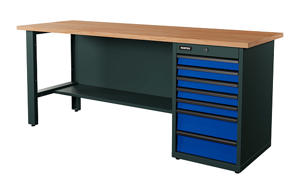 Верстак серии Industrial, 2000 мм, фанера, тумба с 7-ю ящиками, синий RAL 5005