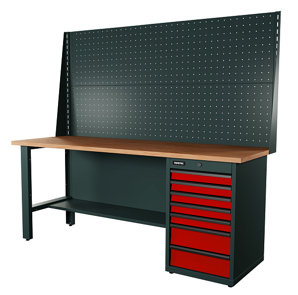 Верстак серии Industrial, 2000 мм, фанера, тумба с 7-ю ящиками, экран 1000, красный RAL 3020