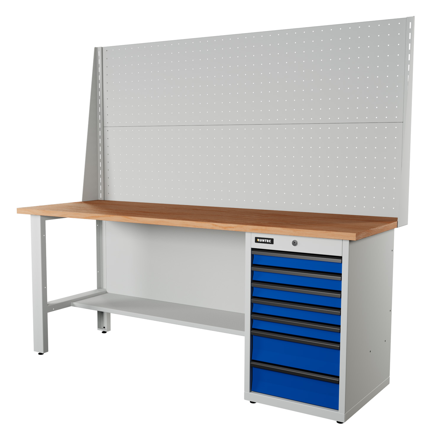 Верстак серии Industrial, 2000 мм, фанера, тумба с 7-ю ящиками, экран 1000, синий (светло-серый) RAL 5005 (7035)