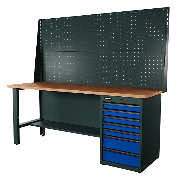 Верстак серии Industrial, 2000 мм, фанера, тумба с 7-ю ящиками, экран 1000, синий RAL 5005