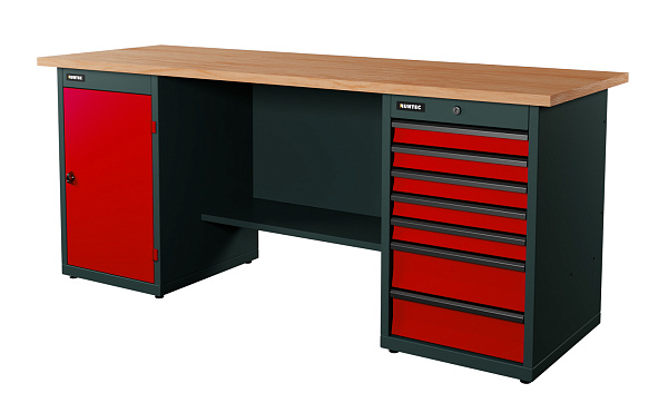 Верстак серии Industrial, 2000 мм, фанера, тумба с 7-ю ящиками + тумба с дверью, красный RAL 3020, RUNTEC, RTI20F-TI7-TI0-3020
