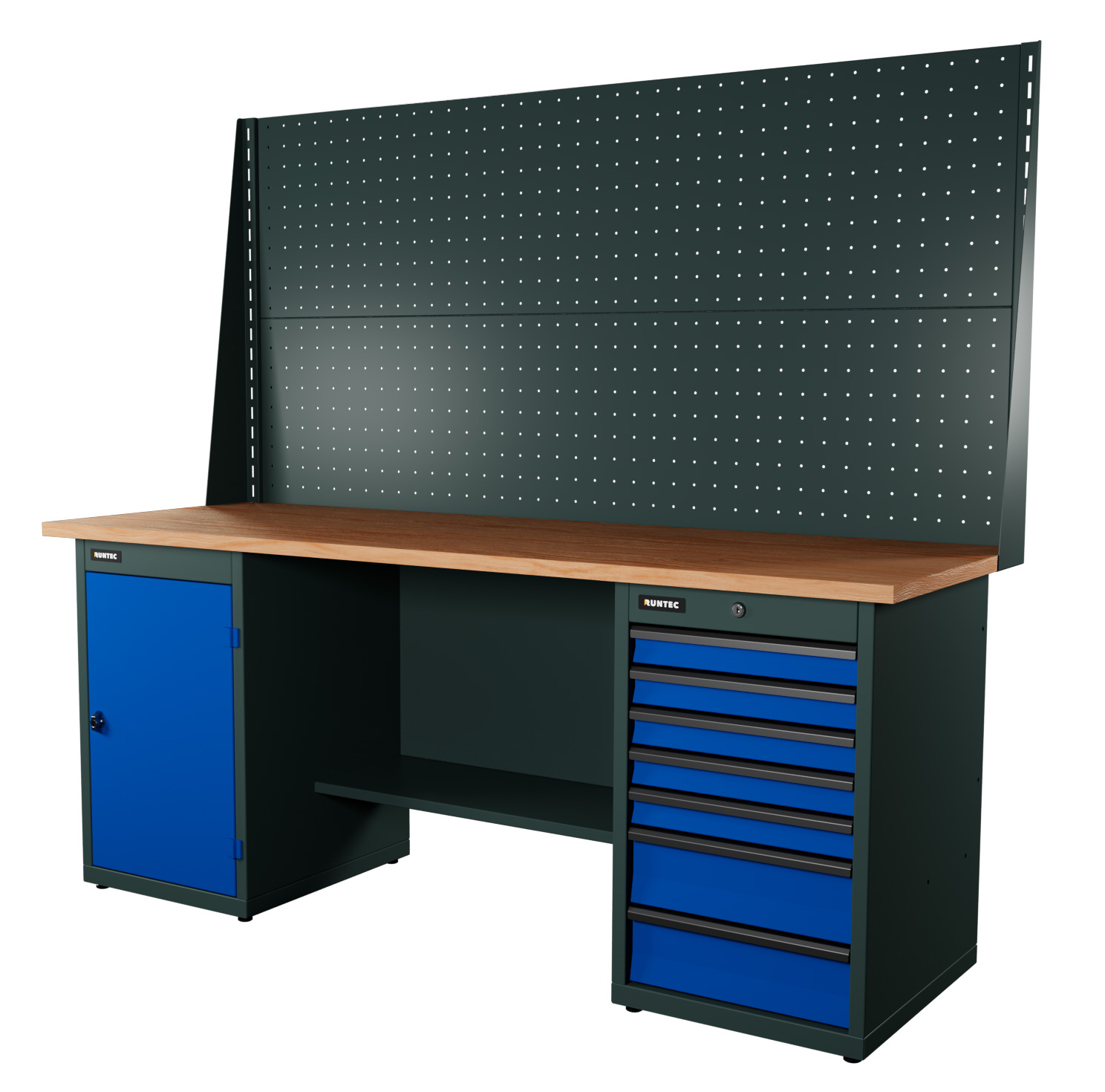 Верстак серии Industrial, 2000 мм, фанера, тумба с 7-ю ящиками + тумба с дверью, экран 1000, синий RAL 5005