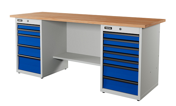 Верстак серии Industrial, 2000 мм, фанера, тумба с 7-ю ящиками + тумба с 5-ю ящиками, синий (светло-серый) RAL 5005 (703