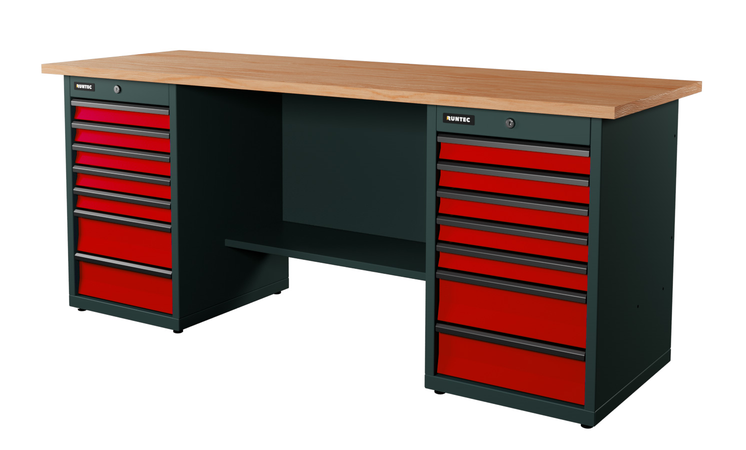 Верстак серии Industrial, 2000 мм, фанера, тумба с 7-ю ящиками + тумба с 7-ю ящиками, красный RAL 3020