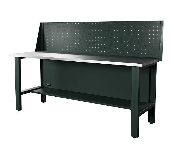 Распределенная нагрузка на верстак достигает 1500 кг благодаря использованию конструкционной стали толщиной от 1 до 2 мм при производстве сборочных составляющих. Эпоксидное порошковое покрытие устойчиво к механическим и химическим воздействиям.