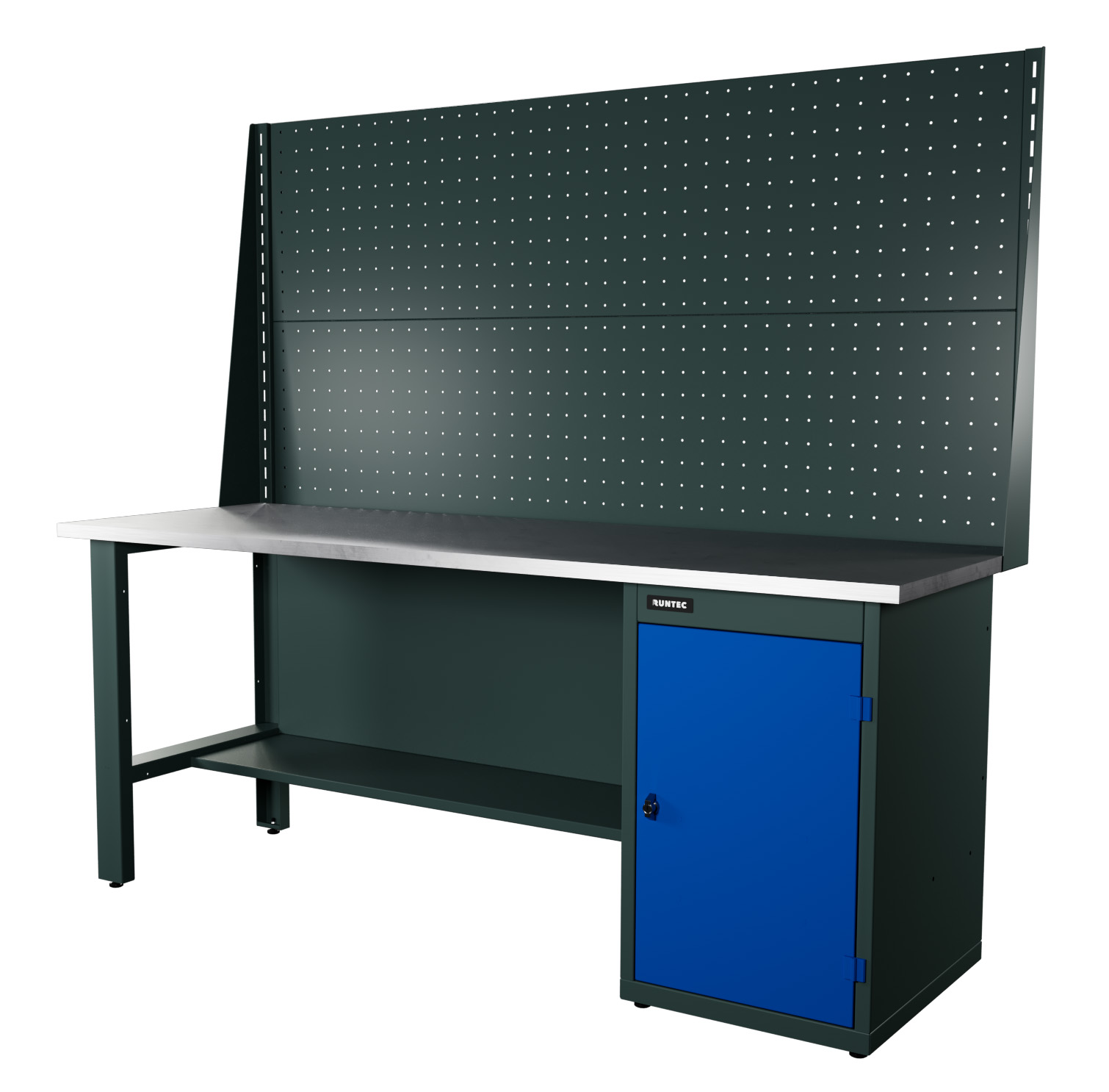 Верстак серии Industrial, 2000 мм, оцинк, тумба с дверью, экран 1000, синий RAL 5005