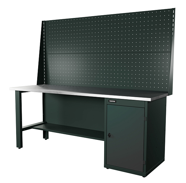 Верстак серии Industrial, 2000 мм, оцинк, тумба с дверью, экран 1000, серый RAL 7016
