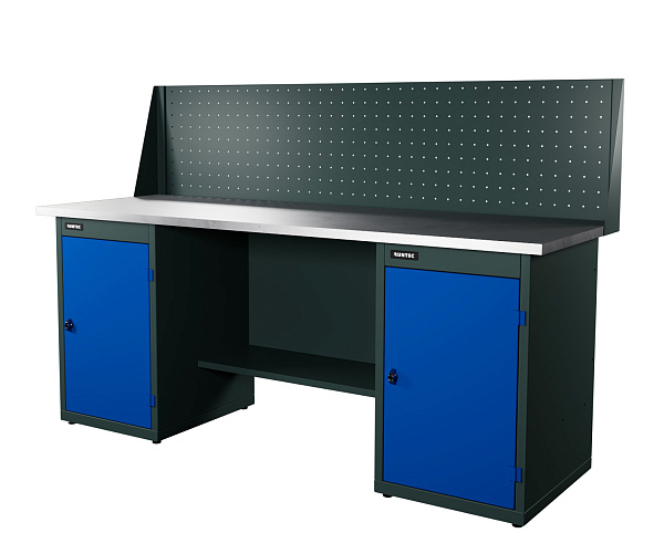 Верстак серии Industrial, 2000 мм, оцинк, тумба с дверью + тумба с дверью, экран 500, синий RAL 5005
