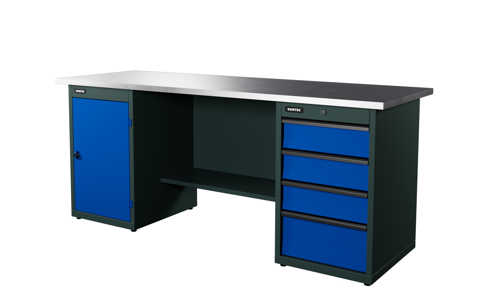 Верстак серии Industrial, 2000 мм, оцинк, тумба с дверью + тумба с 4-мя ящиками, синий RAL 5005