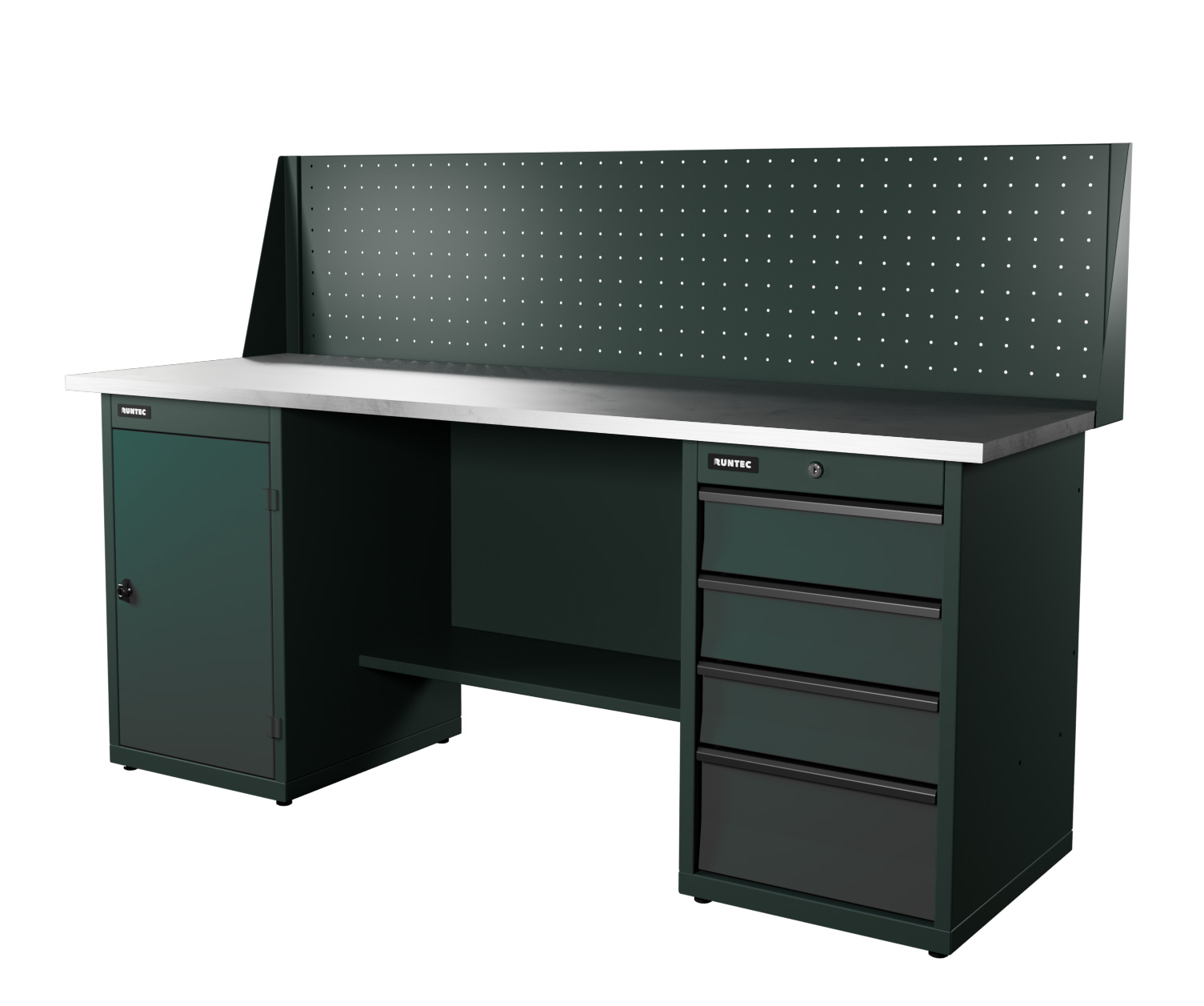 Распределенная нагрузка на верстак достигает 1500 кг благодаря использованию конструкционной стали толщиной от 1 до 2 мм при производстве сборочных составляющих. Эпоксидное порошковое покрытие устойчиво к механическим и химическим воздействиям.