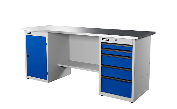 Верстак серии Industrial, 2000 мм, оцинк, тумба с дверью + тумба с 5-ю ящиками, синий (светло-серый) RAL 5005 (7035)