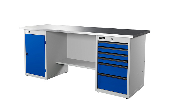 Верстак серии Industrial, 2000 мм, оцинк, тумба с дверью + тумба с 6-ю ящиками, синий (светло-серый) RAL 5005 (7035)