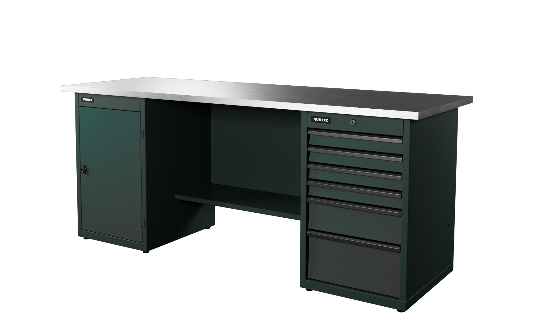 Верстак серии Industrial, 2000 мм, оцинк, тумба с дверью + тумба с 6-ю ящиками, серый RAL 7016
