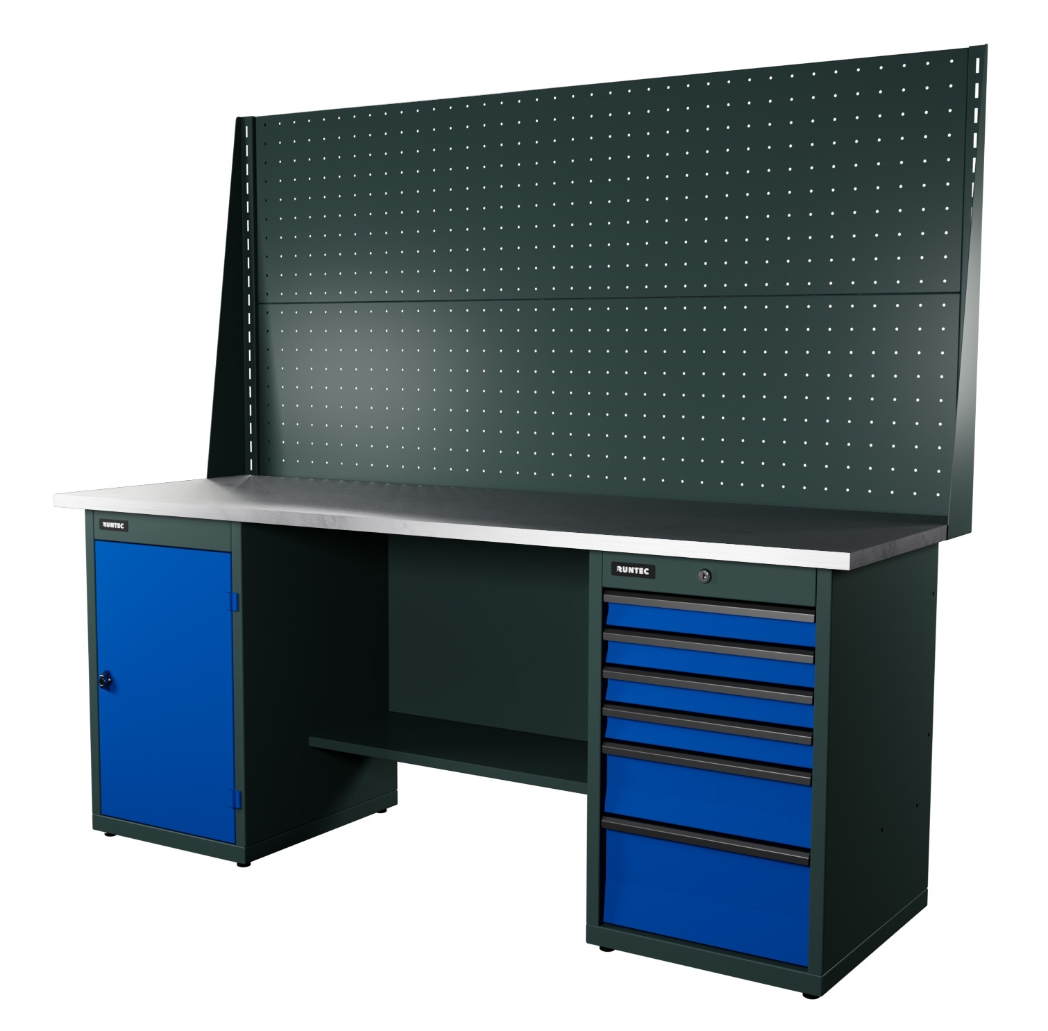 Верстак серии Industrial, 2000 мм, оцинк, тумба с дверью + тумба с 6-ю ящиками, экран 1000, синий RAL 5005