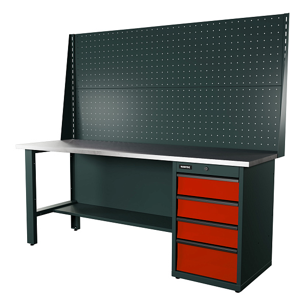 Верстак серии Industrial, 2000 мм, оцинк, тумба с 4-мя ящиками, экран 1000, красный RAL 3020, RUNTEC, RTI20Z-TI4-NI-P20-P20-3020