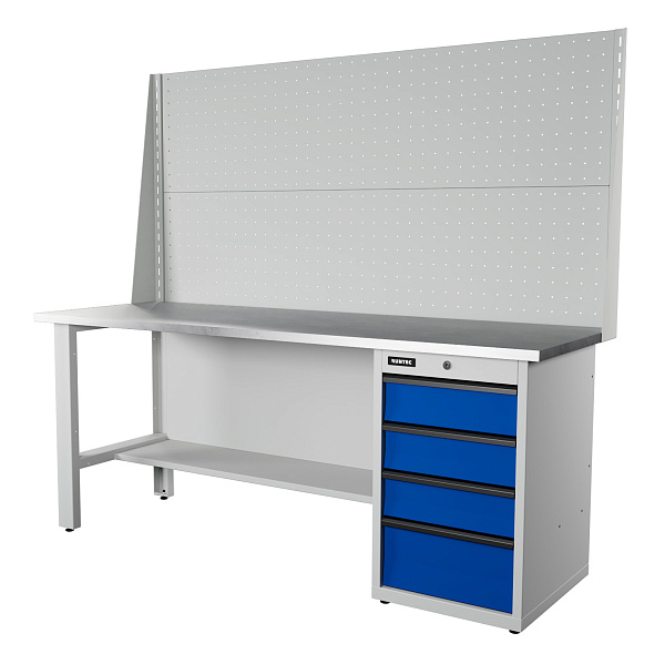 Верстак серии Industrial, 2000 мм, оцинк, тумба с 4-мя ящиками, экран 1000, синий (светло-серый) RAL 5005 (7035), RUNTEC, RTI20Z-TI4-NI-P20-P20-5005(7035)