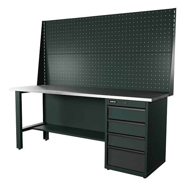 Верстак серии Industrial, 2000 мм, оцинк, тумба с 4-мя ящиками, экран 1000, серый RAL 7016