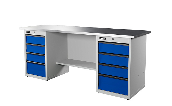 Верстак серии Industrial, 2000 мм, оцинк, тумба с 4-мя ящиками + тумба с 4-мя ящиками, синий (светло-серый) RAL 5005 (70, RUNTEC, RTI20Z-TI4-TI4-5005(7035)