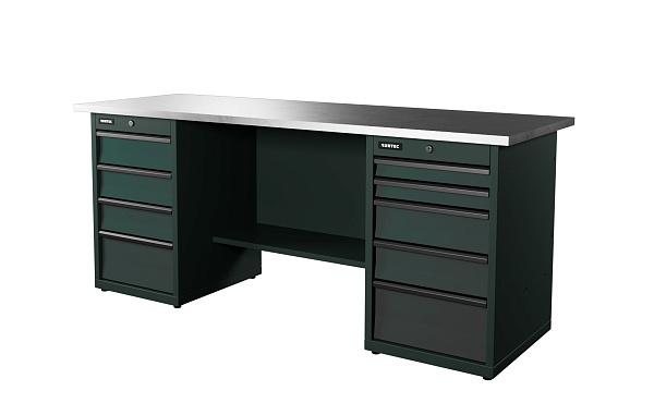 Верстак серии Industrial из конструкционной стали. Встроенные замки с системой Easy Lock позволяют закрыть все ящики одним поворотом ключа. Верстак рассчитан на распределенную нагрузку до 1500 кг.