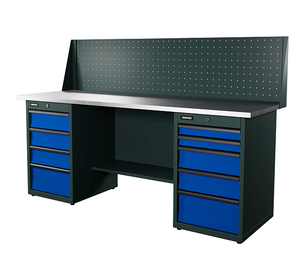 Верстак серии Industrial из конструкционной стали. Встроенные замки с системой Easy Lock позволяют закрыть все ящики одним поворотом ключа. Верстак рассчитан на распределенную нагрузку до 1500 кг.