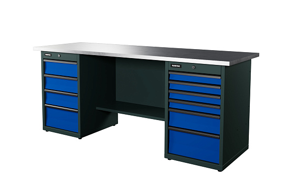 Верстак серии Industrial, 2000 мм, оцинк, тумба с 4-мя ящиками + тумба с 6-ю ящиками, синий RAL 5005