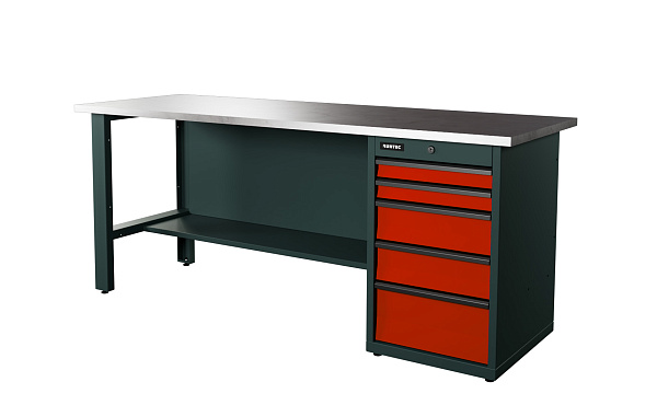 Верстак серии Industrial, 2000 мм, оцинк, тумба с 5-ю ящиками, красный RAL 3020, RUNTEC, RTI20Z-TI5-NI-3020