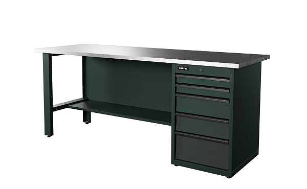 Верстак серии Industrial, 2000 мм, оцинк, тумба с 5-ю ящиками, серый RAL 7016