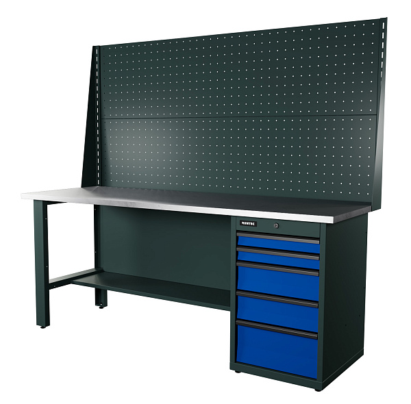 Верстак серии Industrial, 2000 мм, оцинк, тумба с 5-ю ящиками, экран 1000, синий RAL 5005