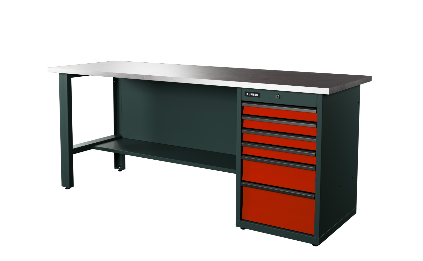Верстак серии Industrial, 2000 мм, оцинк, тумба с 6-ю ящиками, красный RAL 3020