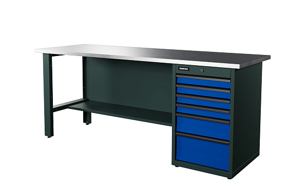 Верстак серии Industrial, 2000 мм, оцинк, тумба с 6-ю ящиками, синий RAL 5005, RUNTEC, RTI20Z-TI6-NI-5005