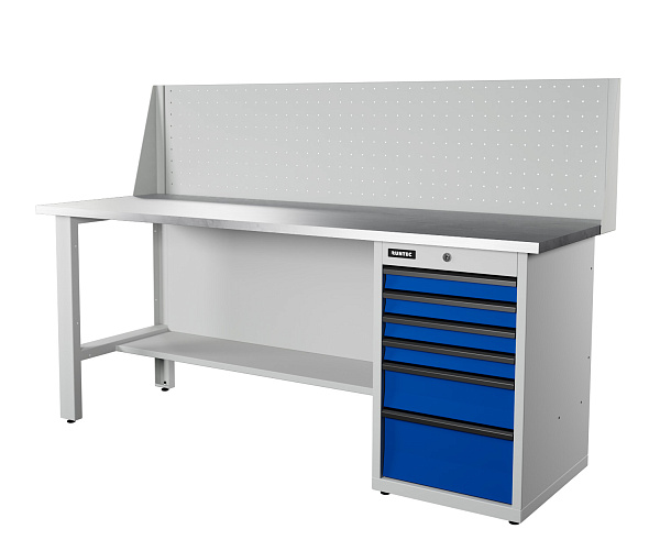 Верстак серии Industrial, 2000 мм, оцинк, тумба с 6-ю ящиками, экран 500, синий (светло-серый) RAL 5005 (7035)