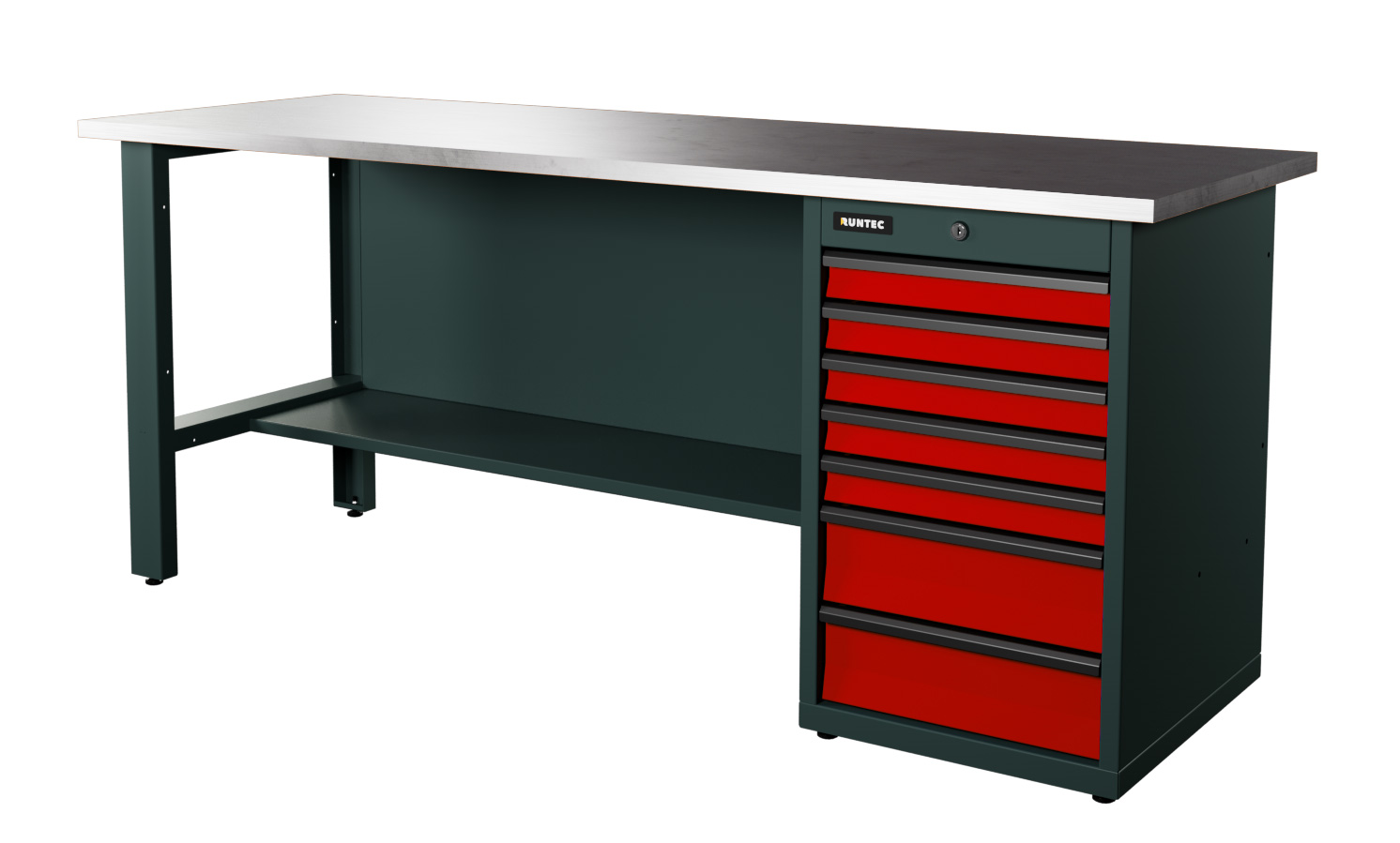 Верстак серии Industrial, 2000 мм, оцинк, тумба с 7-ю ящиками, красный RAL 3020