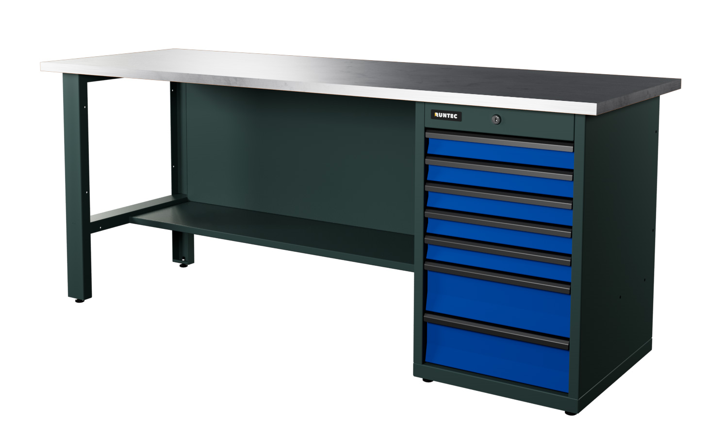 Верстак серии Industrial, 2000 мм, оцинк, тумба с 7-ю ящиками, синий RAL 5005