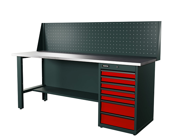 Верстак серии Industrial, 2000 мм, оцинк, тумба с 7-ю ящиками, экран 500, красный RAL 3020, RUNTEC, RTI20Z-TI7-NI-P20-3020