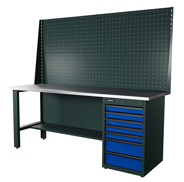 Верстак серии Industrial, 2000 мм, оцинк, тумба с 7-ю ящиками, экран 1000, синий RAL 5005, RUNTEC, RTI20Z-TI7-NI-P20-P20-5005