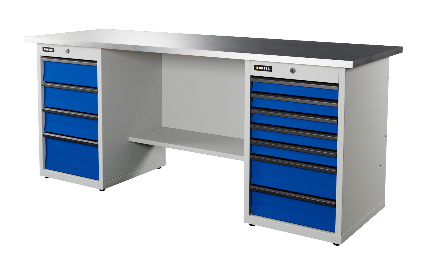 Верстак серии Industrial, 2000 мм, оцинк, тумба с 7-ю ящиками + тумба с 4-мя ящиками, синий (светло-серый) RAL 5005 (703