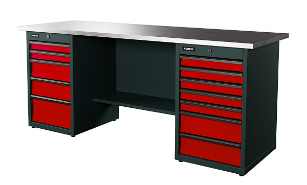 Верстак серии Industrial, 2000 мм, оцинк, тумба с 7-ю ящиками + тумба с 5-ю ящиками, красный RAL 3020, RUNTEC, RTI20Z-TI7-TI5-3020