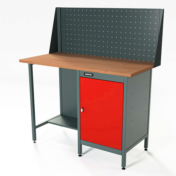 Верстак серии Standart, 1200 мм, фанера, тумба с дверью, экран 500, красный RAL 3020, RUNTEC, RTS12F-TS0-NS-P12-3020