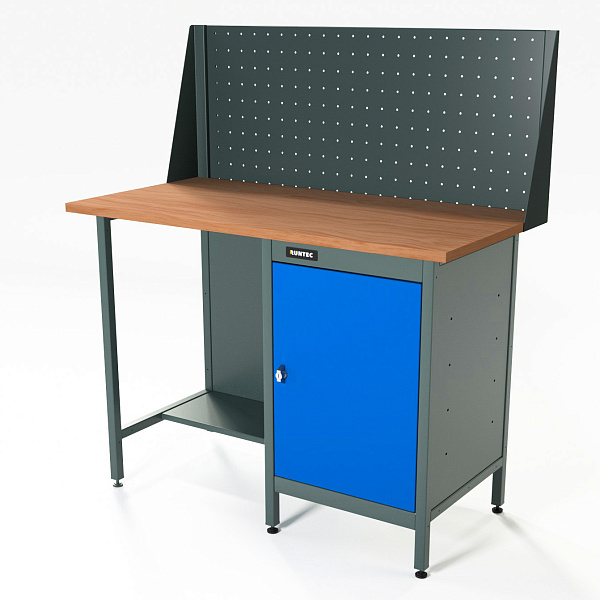 Верстак серии Standart, 1200 мм, фанера, тумба с дверью, экран 500, синий RAL 5005