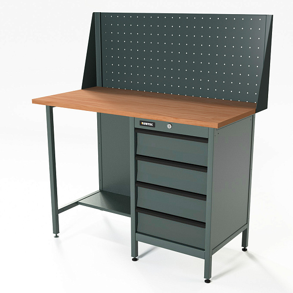 Верстак серии Standart, 1200 мм, фанера, тумба с 4-мя ящиками, экран 500, серый RAL 7016