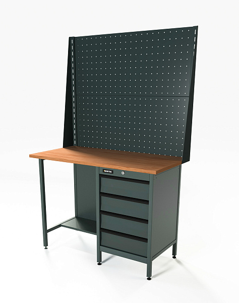 Верстак серии Standart, 1200 мм, фанера, тумба с 4-мя ящиками, экран 1000, серый RAL 7016, RUNTEC, RTS12F-TS4-NS-P12-P12-7016