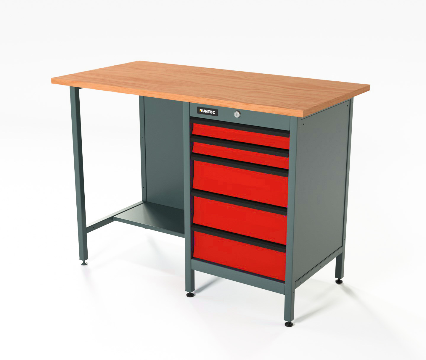 Верстак серии Standart, 1200 мм, фанера, тумба с 5-ю ящиками, красный RAL 3020